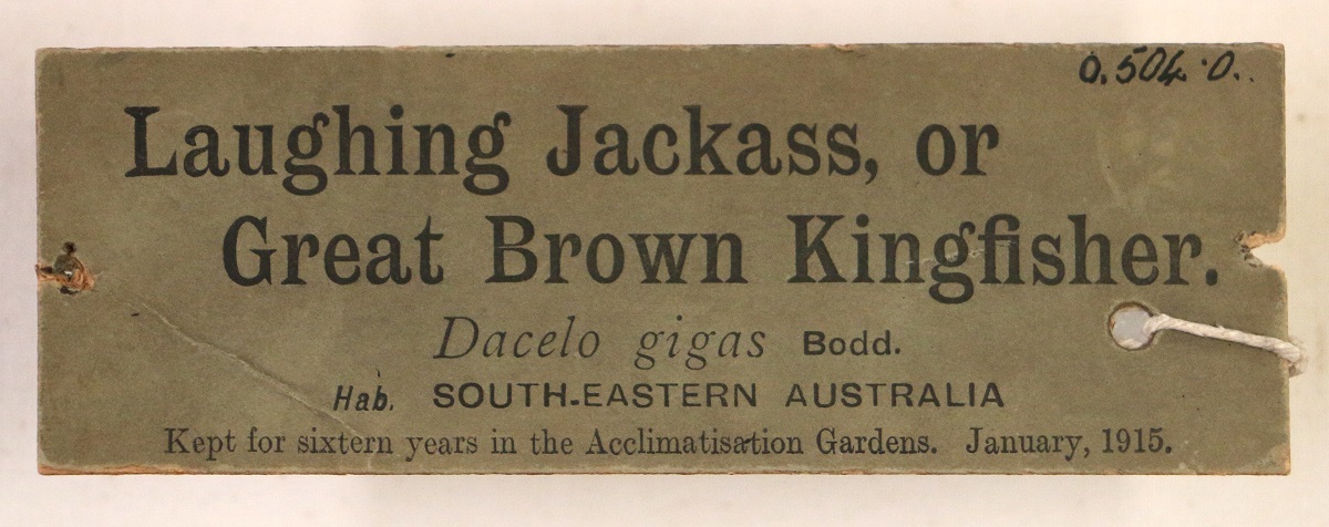 Kookaburra that lived at the Acclimatisation Gardens for 16 years. Canterbury Museum AV39275
