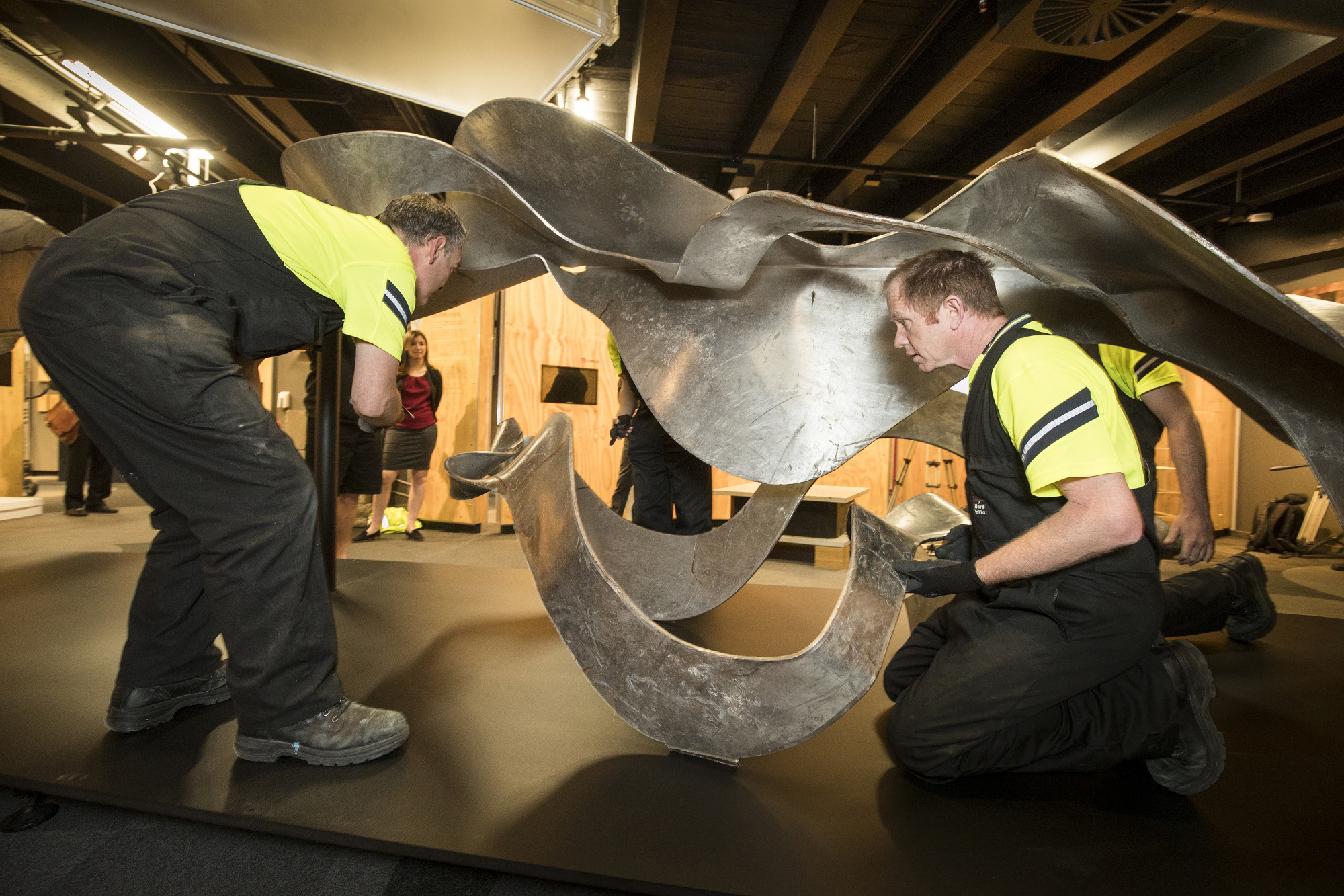 A 7 metre high steel sculpture rescued from the rubble five years after being toppled by a M6.3 earthquake was today installed in Canterbury Museum’s special exhibition Quake City.