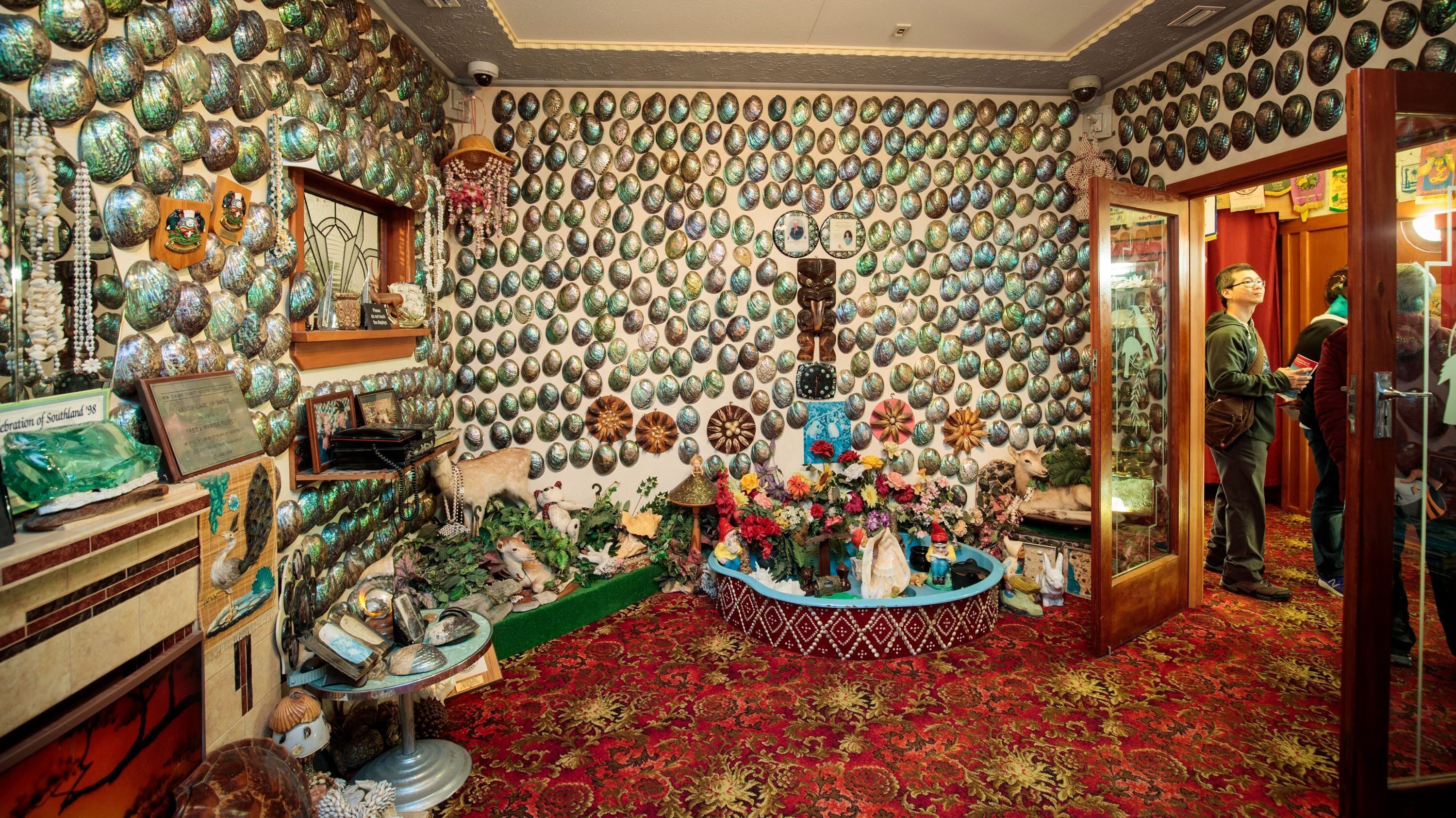More than 50 years ago, Fred and Myrtle Flutey attached a pāua shell to the living room wall of their home in the fishing town of Bluff at the bottom of Te Waipounamu the South Island. Over the years, they added more than 1,000 other pāua shells to the walls and collected an amazing array of kiwiana ornaments.