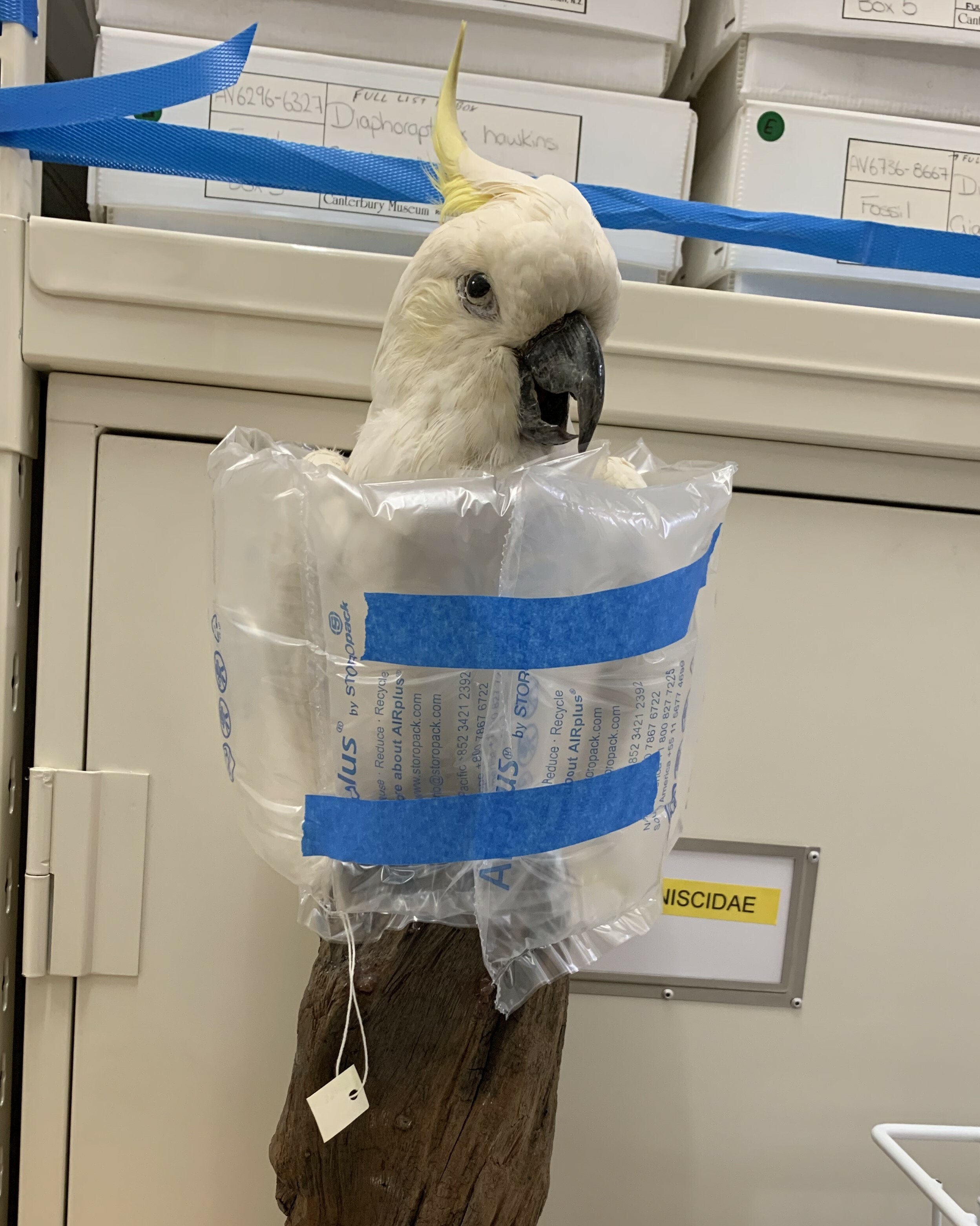 But these little plastic pockets of air are crucial to ensuring our birds (and other taxidermied specimens) arrive at the Museum’s temporary storage facility without a feather out of place.