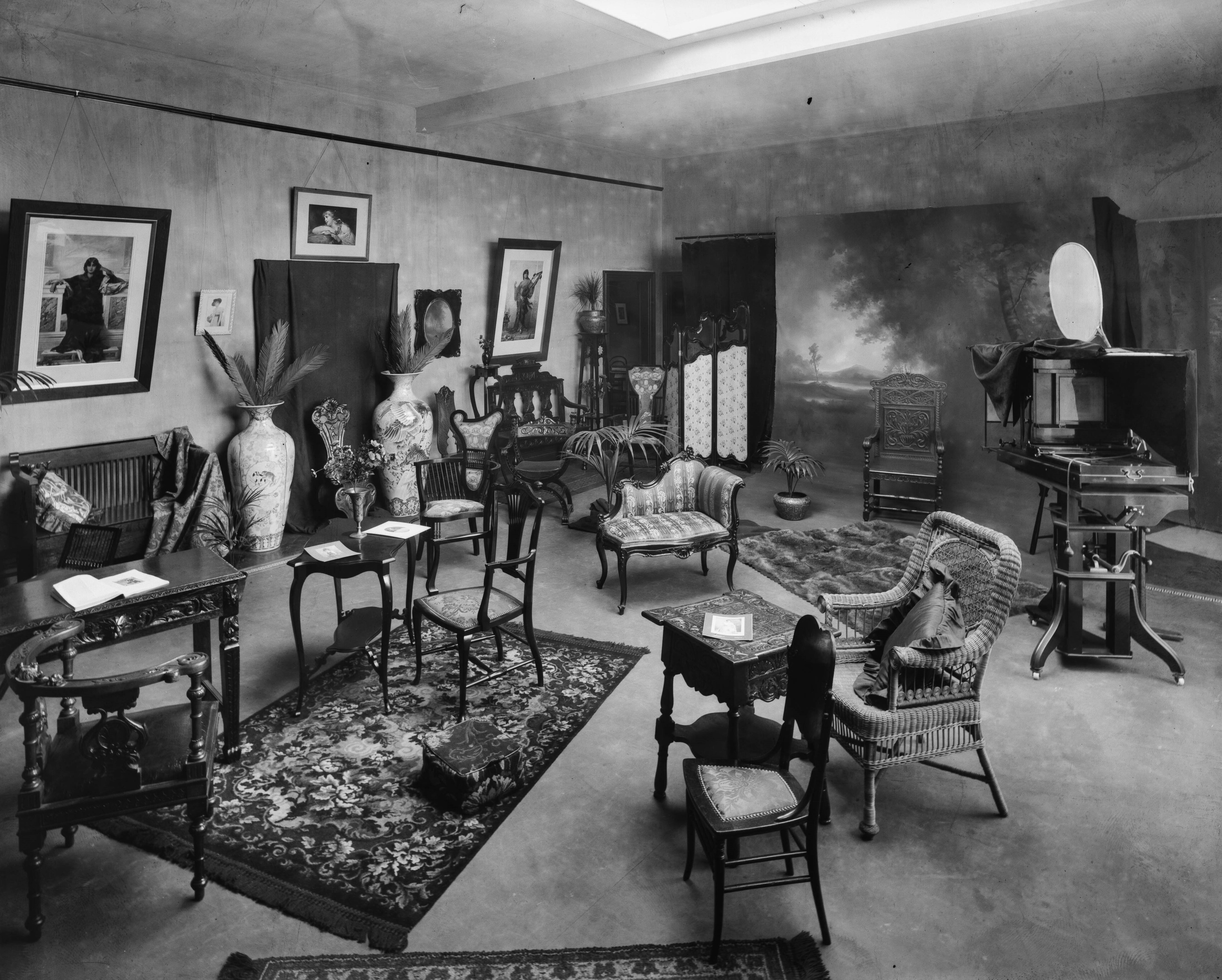 Clifford marketed himself not just as a simple photographer, but as an artist. He ran frequent advertisements in the papers promoting his “unerring artistic instinct”. This creative approach meant some portraits were elaborately staged. Clifford’s studio was full of furniture, props, ornaments and painted backdrops. Mock gardens and beach scenes could be conjured in his studio, complete with scattered leaves and footprints in the sand.