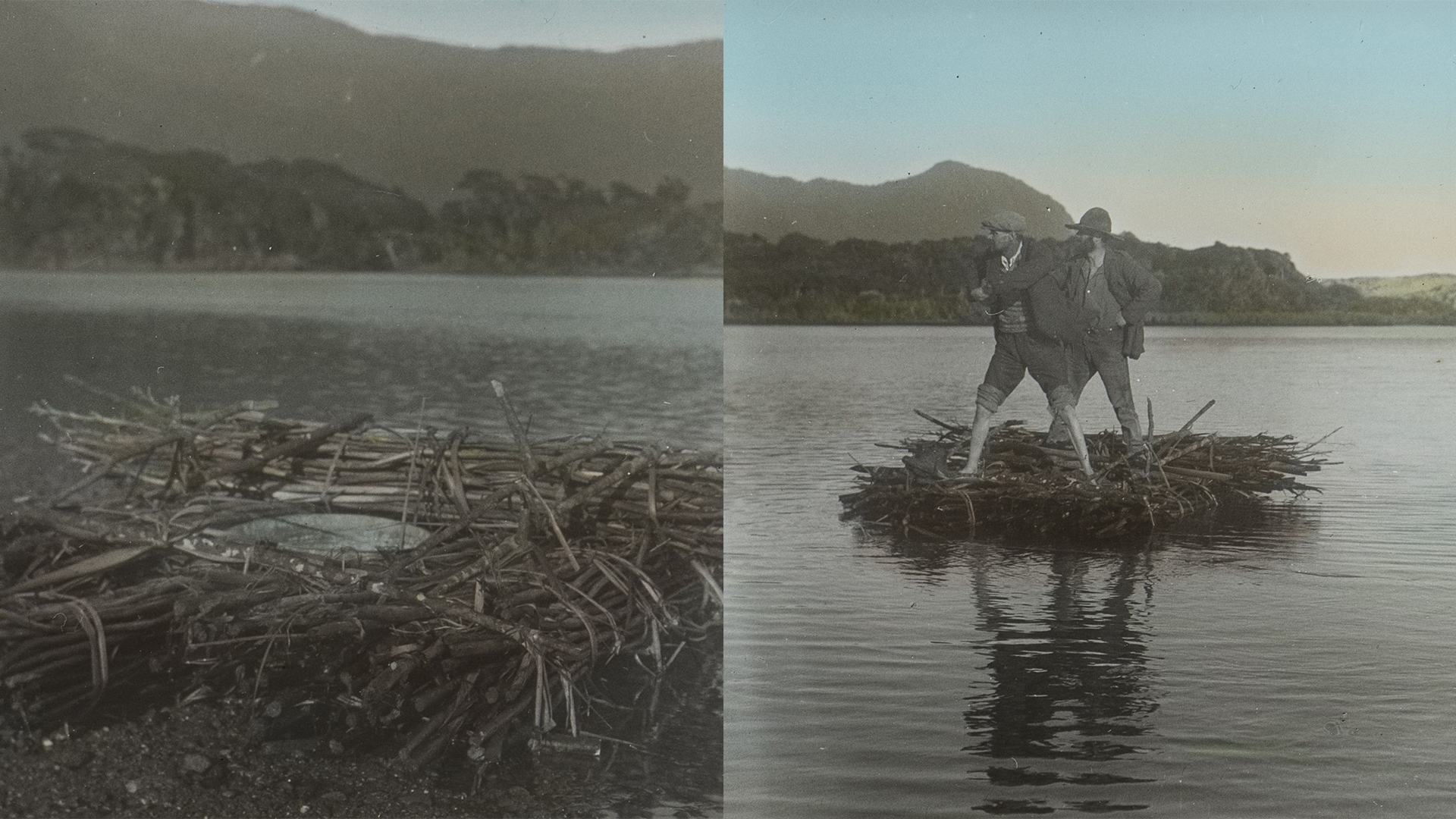 The men crossed the estuary of the Hollyford River in a precarious raft made from a bathtub and bundles of flax sticks before heading south to the Kaipo River. The party then followed the Kaipo River to its source and set up a base camp. From this point Eric continued on alone while Watson and McKenzie retraced their steps. The plan was for them to take a whaleboat with supplies from Martins Bay to Dale Point near Milford Sound and meet Eric. The plan was scuppered when they found that the boat was already in use.